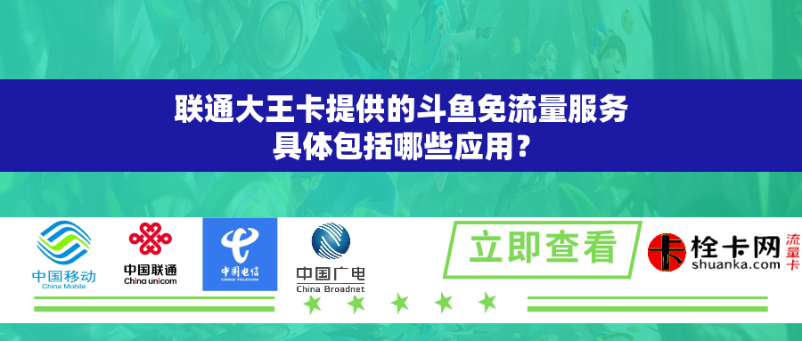联通大王卡提供了包括斗鱼直播在内的多种应用的免流量服务,用户只需按照上述方法激活即可享受,但请注意,部分应用的免流量范围可能有所限制,具体请以app的实际情况为准,包月业务的费用和不包含的流量使用情况也需要用户了解清楚。
