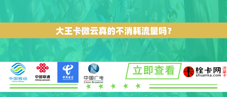 小标题腾讯大王卡简介 腾讯大王卡是联通推出的一款流量套餐,月费19元,包含40GB腾讯专属流量,全国通用。微云应用范围 微云属于腾讯系应用,在腾讯大王卡的特权流量(免费)使用范围内。免流条件 微云上传下载所有腾讯官方的软件是免流的,不是腾讯官方的还是扣费的。测试结果 亲自测试,找了一个1.73G的文件包放到微云里面,然后下载,流量没有扣,由此可见是免流的。注意事项 过大的文件资源建议用无线网下载,王卡的每月累计使用流量上限为40G。