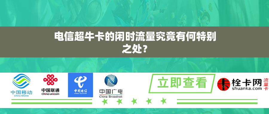 电信超牛卡是中国电信推出的一款全时段流量卡,其中闲时流量是其最大的特点之一,闲时流量是指在特定时间段内可以享受更多流量的优惠,而闲时一般是指晚上11点到早上7点之间。