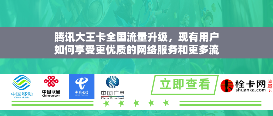 腾讯大王卡全国流量升级为用户提供了更加灵活和实惠的流量选择,满足了不同用户的需求,通过简单的申请流程,用户可以享受到更多的流量优惠,提升网络使用体验。
