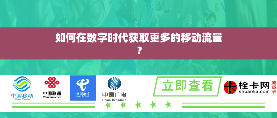 通过上述多种途径,用户可以有效地获取和使用移动流量,满足日常的上网需求,建议用户根据自己的实际使用情况选择合适的流量获取方式,以确保流量的有效利用。