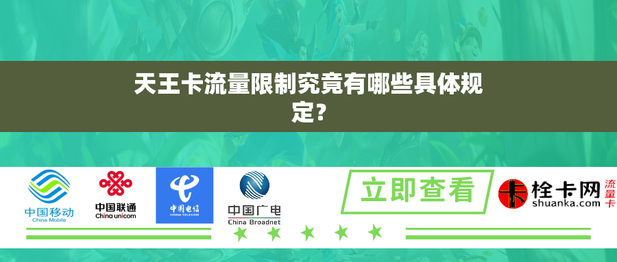 天王卡虽然为用户提供了较大的流量额度和便捷的免流服务,但仍然存在明确的流量使用限制,用户在使用时应留意各自的流量使用情况,避免超出套餐限制导致额外费用。