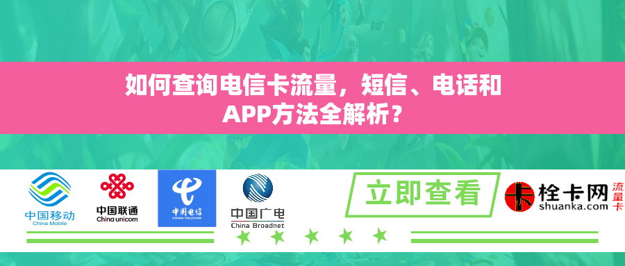通过以上几种方法,电信卡用户可以方便快捷地查询自己的流量使用情况,从而更好地规划网络使用,避免不必要的费用支出,建议用户根据自己的需求和习惯选择合适的查询方式,并定期进行查询以掌握最新的流量使用情况。