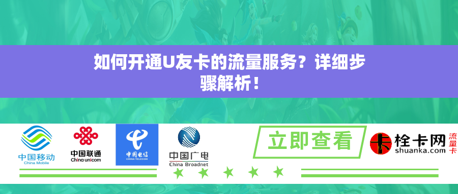 是几种常见的开通U友卡流量的方法,用户可以根据自己的实际情况选择最适合自己的方式进行操作。
