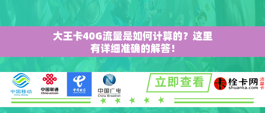 大王卡40G流量的计算方式相对简单明了,用户只需根据自己的使用情况选择合适的套餐和计费方式即可,为了避免产生不必要的费用,建议用户在流量使用接近40GB时及时关注流量使用情况并合理规划后续流量使用。