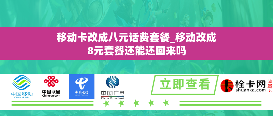 近日,移动通信公司宣布将推出全新的八元话费套餐,引起了广大用户的关注和热议。这个消息对于那些经常使用移动卡的用户来说,无疑是个利好消息。而对于那些已经拥有其他套餐的用户来说,是否可以改签八元套餐并能够把原有话费还回来,成为了大家关注的焦点。