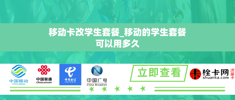 第三段:套餐期限移动卡改学生套餐的使用期限一般根据学生的学习周期来确定。学生用户可以根据自己的需求选择一个月、半年或者一年的套餐时长。对于一些特殊情况,学生还可以申请退订或者延长套餐的使用期限。这样一来,学生用户可以更加灵活地根据自己的需求进行选择和使用,确保通信服务的连续性和稳定性。