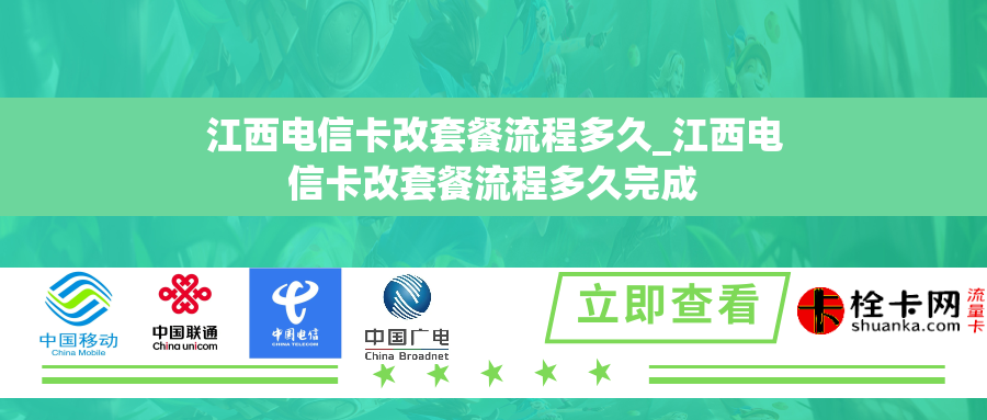 江西电信卡改套餐流程多久?这是许多江西移动用户关心的问题。在如今移动通信日益发达的社会,选择合适的套餐非常重要。不同的套餐拥有不同的优惠及服务内容,因此很多用户希望在使用一段时间后,能够更换适合自己需求的套餐。下面我们将详细介绍江西电信卡改套餐的流程以及完成需要多长时间。