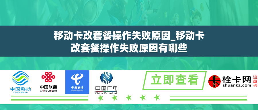 随着移动设备的普及,越来越多的人开始使用移动卡进行通信。而移动卡改套餐操作成为了用户经常需要进行的操作之一。然而,有的时候我们可能会遇到改套餐操作失败的情况,那么这其中可能存在着哪些原因呢?下面我们就来详细了解一下。