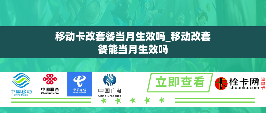 移动卡改套餐当月生效吗?这是许多人在考虑更换移动电话套餐时常常会遇到的问题。移动公司颁布号召和政策,规定了套餐变更的具体流程和时间。本文将详细解析这个问题,并回答大家的疑惑。