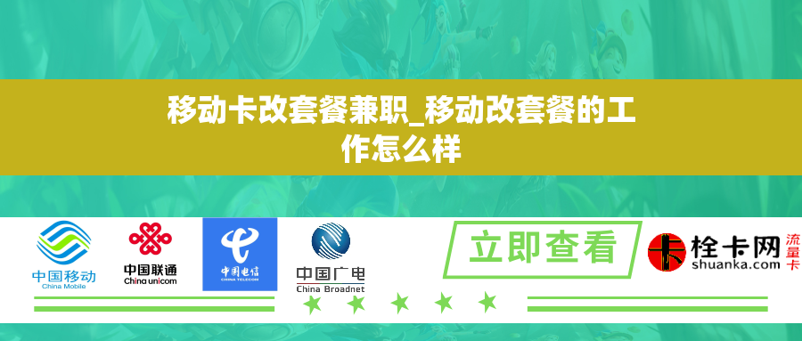 移动卡改套餐兼职是一种快速赚钱的方式,越来越多的人选择加入这个行业。在这份工作中,你可以帮助用户更好地选择移动卡套餐,提供优质的服务,并享受丰厚的回报。
