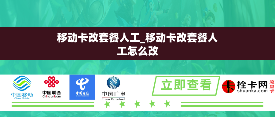 移动卡改套餐是指用户根据自身需求和使用情况,对原始套餐进行更换或者升级的一种操作。在日常使用中,由于各种原因,用户可能需要进行套餐的变更,比如需要更加优惠的资费、更多的流量、更多的通话时间等。此时,用户可以通过人工方式进行移动卡改套餐操作。