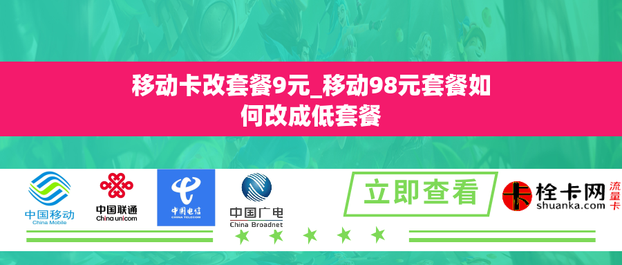 了解9元套餐的详细内容在将98元套餐改为9元套餐之前,我们需要先了解一下9元套餐的详细内容。通常情况下,9元套餐是移动公司提供的最低价位套餐,主要适合轻度使用手机的用户。具体的套餐内容可能因地区和政策的不同而有所差异,但一般包含以下几个方面: