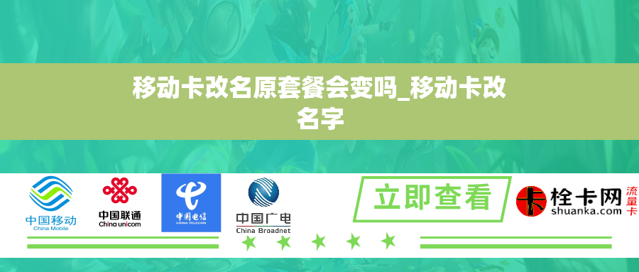 移动卡改名字的必要性移动卡改名字是指将移动卡上显示的用户姓名修改为其他名称。这项服务可以带来一定的便利和私密性,适用于不愿意暴露个人信息的用户。当然,改名字并不会改变移动网络套餐本身,只是单纯地更改了卡片上的显示信息。
