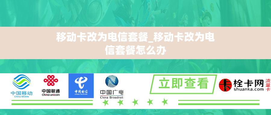 总之,将移动卡改为电信套餐需要经过一系列的步骤和操作。首先,我们应该了解电信套餐相对于移动卡的优势,以便更好地选择适合自己的套餐。其次,我们需要联系电信运营商,了解办理相关手续的具体要求和步骤。最后,我们需要准备和提交相关的身份证明和资料,并耐心等待电信运营商的处理和审核。希望以上的介绍能够帮助大家更好地进行移动卡改为电信套餐的操作。