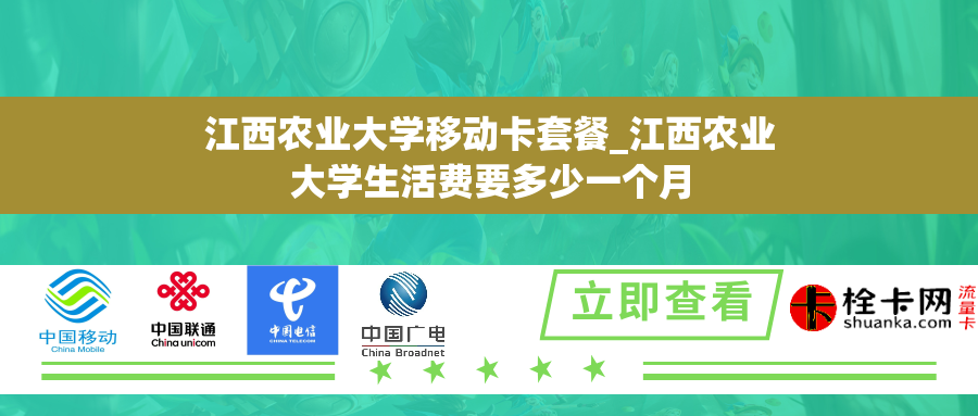 江西农业大学是江西省重点支持建设的本科高校,位于江西省南昌市。作为一所以农业为主要特色的大学,这里不仅有优秀的师资和丰富的实践教学资源,还有着一系列服务于学生的便捷措施。其中之一就是为了方便学生在校园内外通讯,学校推出了移动卡套餐。下面将介绍关于江西农业大学移动卡套餐的内容,以及学生在校内的生活费用。
