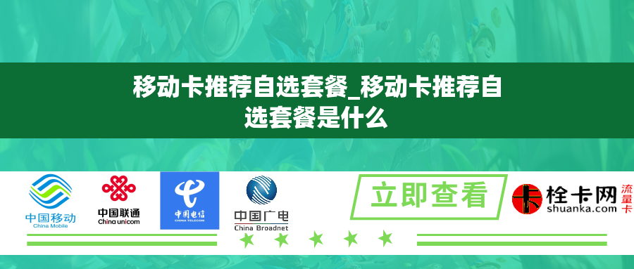 移动卡推荐自选套餐是指移动运营商提供给用户的一种个性化选择套餐的服务。随着通信技术的发展和人们对通信需求的不断变化,传统的固定套餐已经无法满足用户的需求。移动卡推荐自选套餐所提供的个性化选择套餐,能够更好地满足用户的通信需求,提供更好的服务。