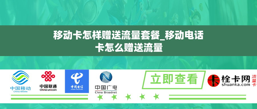 移动卡是随着智能手机的普及而变得不可或缺的一种通信工具,而流量套餐又是现代人日常生活中必不可少的一种需求。然而,有时我们可能会面临流量用尽的尴尬局面,这时候若能赠送流量套餐给他人就能解决问题。那么,移动电话卡又怎样赠送流量套餐呢?下面将详细介绍。