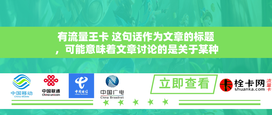 流量王卡,作为现代通信服务中的一个重要组成部分,为用户提供了丰富的数据流量和通话分钟数,以满足不同用户的需求,以下是一些常见的流量王卡套餐及其特点: