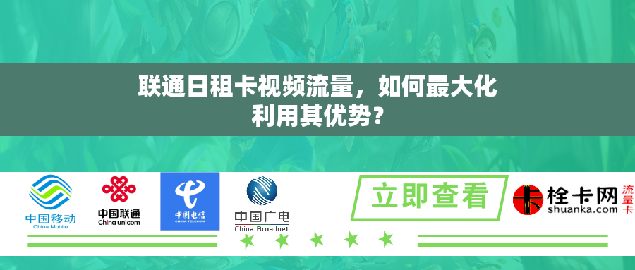 注意地区政策差异,建议致电当地联通客服热线咨询通过以上详细介绍,可以全面了解联通日租卡视频流量的相关信息,帮助用户更好地选择合适的套餐并享受便捷的服务。