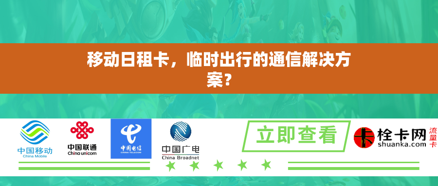 移动日租卡是中国移动推出的一种灵活便捷的流量套餐,适合移动互联网用户按需购买,这种卡片通常提供多种流量档位选择,如2GB、4GB、6GB等,用户可以根据自己的需求和预算选择合适的套餐,日租卡还支持多种有效期选择,如一天、三天、七天等,方便用户在不同时间段内使用。
