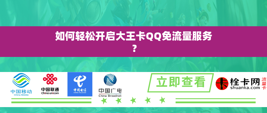 步骤 描述 1 打开手机QQ,点击左上方的头像。 2 点击左下角的“设置”按钮。 3 点击“免流量特权”。 4 点击右上角的“更多”按钮。 5 在弹出的菜单中点击“免流激活”。 6 确定本手机所插卡为腾讯大王卡,输入手机号获取验证码绑定。3、注意事项: