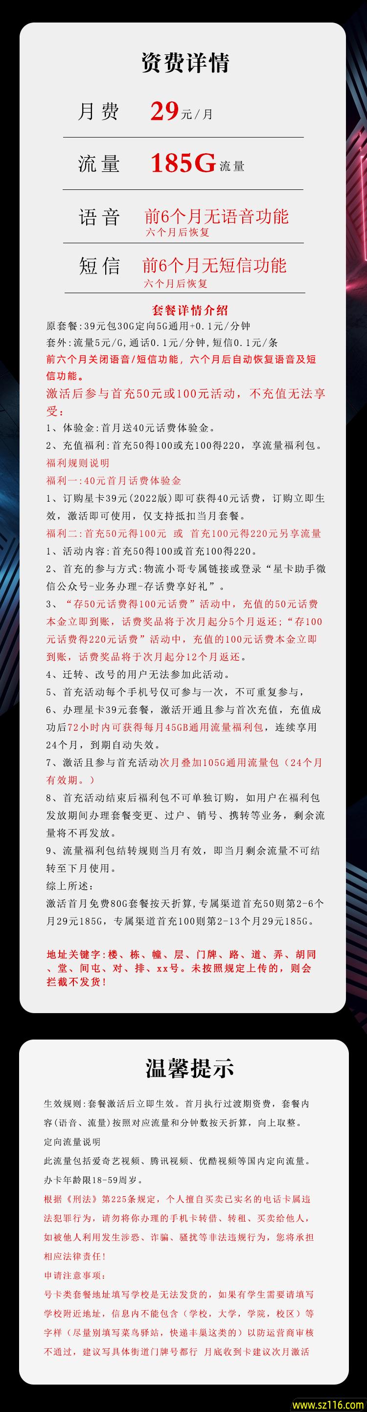 温馨提示:号卡资料可能会随运营商政策而变动,具体资料以下单页为准,此页面仅供展示,非下单页面。