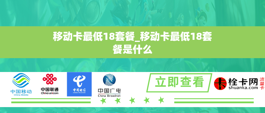移动卡最低18套餐是一种通信服务套餐,提供用户手机通话、短信和上网等功能。它是移动通信运营商为满足用户不同需求而推出的一种基础套餐,适用于那些对通信服务要求较为简单和预算有限的用户。
