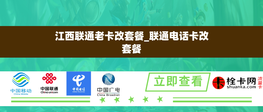 江西联通老卡改套餐是指江西省联通用户将自己的电话卡从原有套餐改为新的套餐,这样可以享受到更加优惠的话费和流量等服务。随着通信技术的不断发展,江西联通不断更新其套餐,以满足用户不断变化的需求和提高用户的体验。下面将详细介绍江西联通老卡改套餐的具体内容,以及如何进行老卡改套餐。