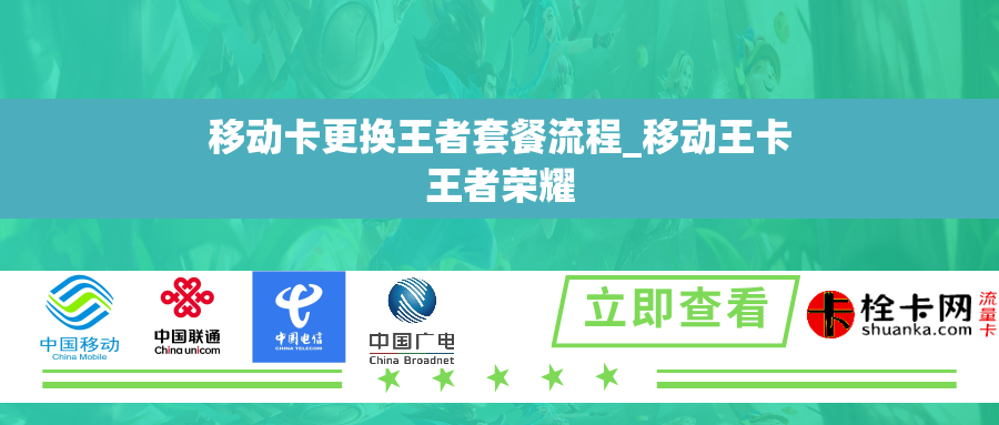 引言随着玩家对手机游戏的需求不断增长,越来越多的用户选择使用手机玩游戏。作为一款最受欢迎的手机游戏之一,王者荣耀吸引了众多玩家。而移动王卡王者荣耀套餐就是为玩家提供专门针对该游戏的优质服务。在本文中,我们将介绍移动卡更换王者套餐的流程。