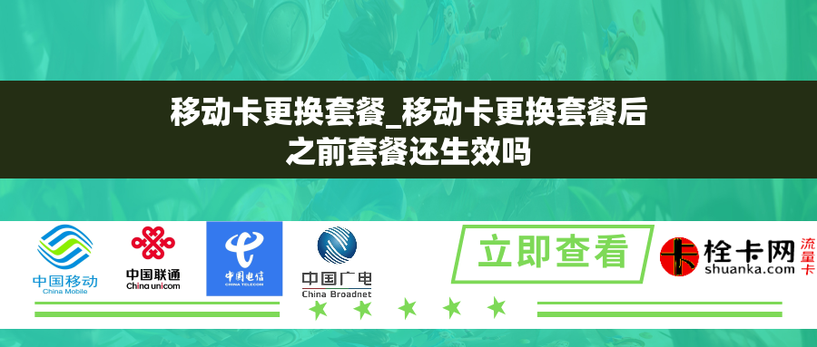 更换套餐的生效时间那么,当更换移动卡的套餐后,之前的套餐是否还会继续生效呢?一般情况下,移动卡的套餐变更是按照约定的生效时间进行切换的。在你申请更换套餐的时候,通常会有一个生效日期的选择,这个日期就是你新套餐开始生效的时间点。在此之前,你的旧套餐仍然会正常生效。但是需要注意的是,即使你选择了一个新的生效日期,原有的套餐费用仍会根据传统的计费周期进行收费,直至新套餐开始生效。