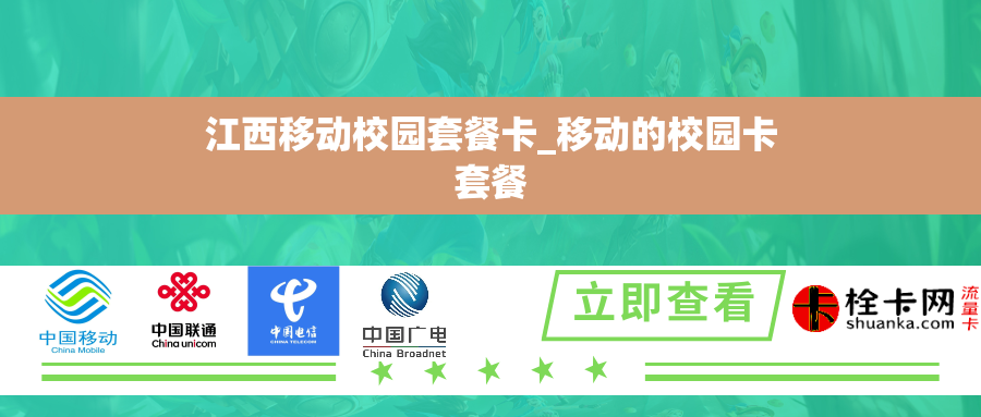 优惠活动丰富多样为了进一步吸引学生的关注,江西移动校园套餐卡还推出了丰富多样的优惠活动。首先,针对新用户办理套餐卡的学生,江西移动提供了首月免费使用的优惠,让学生们在刚开始使用时就能感受到套餐卡的便利和实惠。其次,江西移动还定期推出一些特价优惠活动,如通话、流量双倍送等,大大提高了学生们的费用性价比。此外,江西移动还与一些知名品牌合作,提供了一些线上线下购物折扣和礼品赠送等活动,使得套餐卡更具吸引力。
