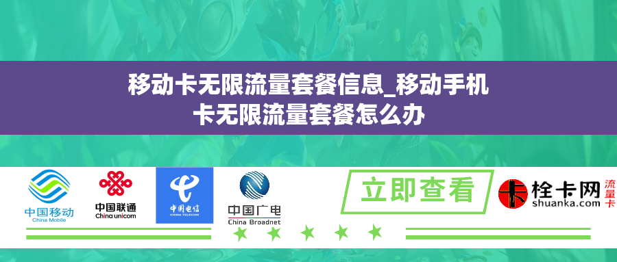 总之,移动卡的无限流量套餐为用户的上网体验提供了更大的自由和便捷性。用户可以根据自己的需求选择适合自己的套餐类型,并通过手机应用或者线下营业厅轻松办理。在使用过程中,要注意相关的注意事项,以免给自己带来不必要的麻烦。移动卡无限流量套餐是现代生活中不可或缺的一部分,它已经成为了人们日常生活和工作中的重要工具之一。