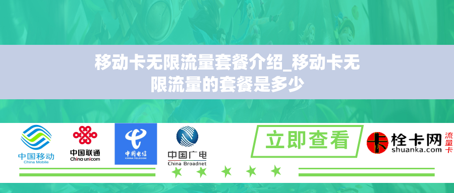 套餐介绍移动卡无限流量套餐一般会提供两种选择:单卡套餐和多卡套餐。单卡套餐适合个人用户,只需要一张移动卡即可,而多卡套餐则适合家庭、公司等拥有多个用户的场景。根据不同的套餐类型,所提供的无限流量也会有所差异。