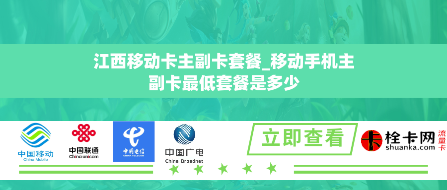 2. 移动手机主副卡最低套餐在江西移动的主副卡套餐中,最低价格是100元每月。这个套餐包含了主卡和副卡的通话、短信和流量资源共享,满足了用户日常沟通和上网的需求。具体来说,主副卡共享1200分钟通话时长,送100条短信以及10GB流量。主卡和副卡都可以拨打免费电话,并享受免费接听来电。此外,这个套餐还包含了一些其他福利,如全国漫游免费、流量不清零等。