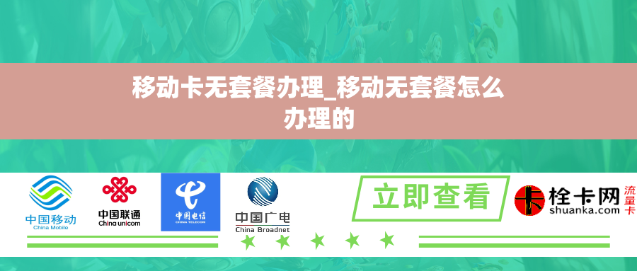 通过以上介绍,相信大家对移动卡无套餐的办理方式有了更进一步的了解。无套餐服务为用户提供了更加便捷、灵活的通信方式,满足了不同用户的需求。如果你还没有享受到这项服务,不妨尝试一下,在办理之前详细了解相关信息,选择适合自己的无套餐服务,享受更便利的通信体验。