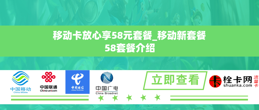现在,移动推出了一款新的套餐——移动卡放心享58元套餐。这一套餐具有超高性价比,适合各类用户使用。下面详细介绍一下这款套餐的优势和功能。
