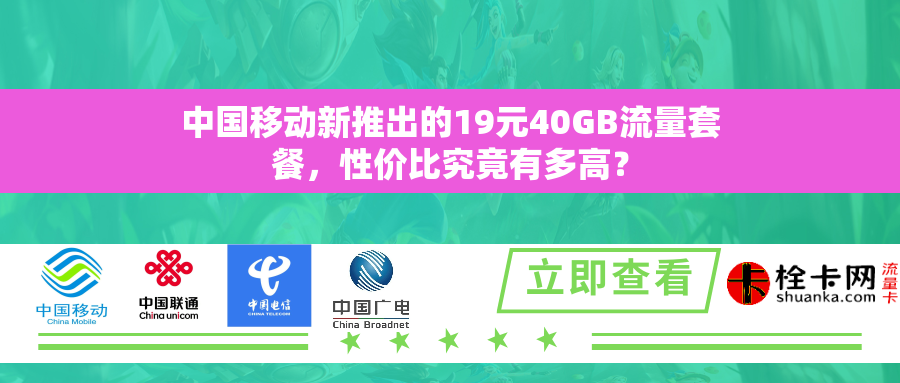 总体评价中国移动19元卡套餐是一款性价比极高的套餐,适合对价格敏感且流量需求一般的用户,套餐内包含的40GB全国通用流量能够满足大多数用户的日常使用需求,同时赠送的会员权益也为用户提供了更多的娱乐选择,如果您正在寻找一款便宜实惠的手机卡套餐,中国移动19元卡套餐是一个不错的选择。