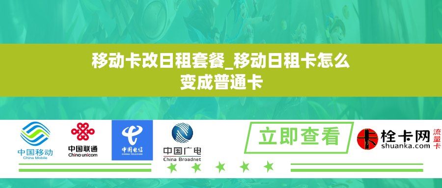 如何将移动日租卡变成普通卡对于一些长期需求通信的用户来说,将移动日租卡变成普通卡是一个比较合适的选择。下面是一些步骤来帮助你将移动日租卡变成普通卡: