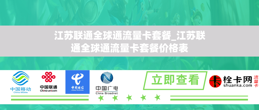 套餐价格表江苏联通全球通流量卡套餐提供了多种不同流量和有效期的选择,用户可以根据自己的需求选择最适合的套餐。以下是江苏联通全球通流量卡套餐的价格表: