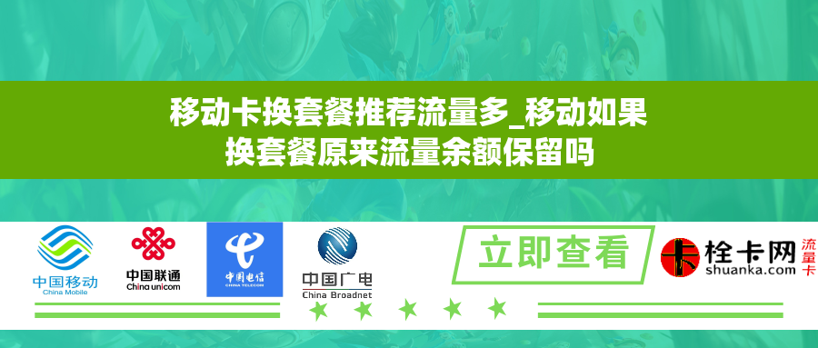 移动卡换套餐是当今社会中常见的一种操作,人们常常因为某些原因需要更换自己的手机套餐。在选择新的套餐时,很多人都希望能够获取更多的流量,毕竟在科技发展迅速的今天,流量对于我们来说已经变得越来越重要。那么,移动卡换套餐推荐流量多吗?同时,如果我们换套餐,原来的流量余额是否会保留呢?下面就为大家详细解答这些问题。