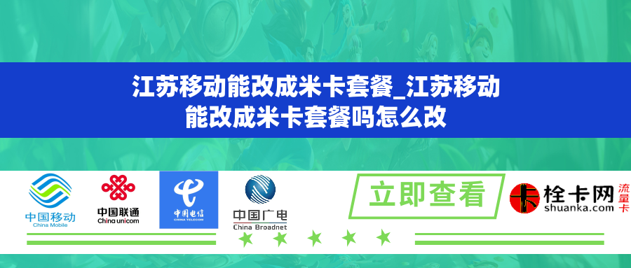 2. 江苏移动能改成米卡套餐吗?对于江苏移动用户来说,可以通过一定的方式将其转变成为米卡套餐。首先,您可以前往江苏移动的营业厅或者通过官方网站进行咨询,了解是否支持米卡套餐的转换。其次,如果江苏移动支持米卡套餐的转换,您可以在营业厅或者官方网站填写相应的申请表格,并提供相关的材料进行办理。最后,按照办理的流程和要求,进行相应的费用缴纳和套餐变更操作即可。