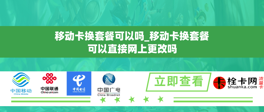 移动卡换套餐的可行性换套餐是目前移动服务市场常见的需求,在满足一定条件的前提下,一般是可以进行的。首先,需要确认所使用的移动卡对应的运营商是否提供了换套餐的服务。不同运营商的政策和规定可能会有所不同,因此在进行换套餐操作之前,最好先咨询相关运营商的工作人员以了解具体细节。