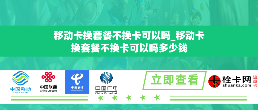 移动卡换套餐不换卡可以吗?这是许多用户在对移动网络套餐进行调整时问的一个常见问题。通常情况下,用户需要更改套餐是因为他们的需求发生了变化,例如对流量、短信或通话时长的需求增加或减少。在一些情况下,用户希望更改套餐但不想更换他们已经使用的移动卡。接下来,我们将探讨一下这个问题以及相关费用问题。